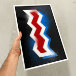• Reverse glass hand-painted with lettering enamel and spray paint.
